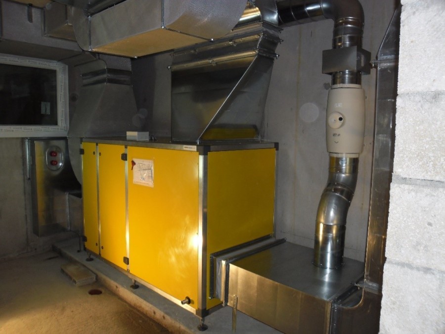 Installation complète d’un système de renouvellement d’air contrôlé à double flux avec récupération de chaleur, conforme au standard MINERGIE.