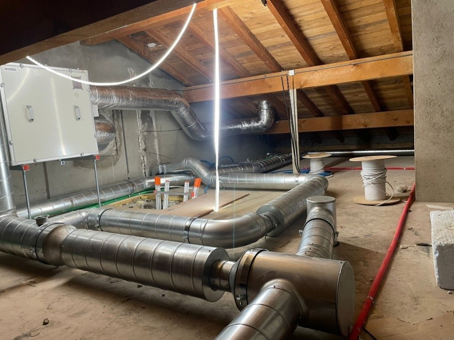 Installation complète d’un système de ventilation contrôlée à double flux avec récupération de chaleur, en collaboration avec Alp'Architecture.
